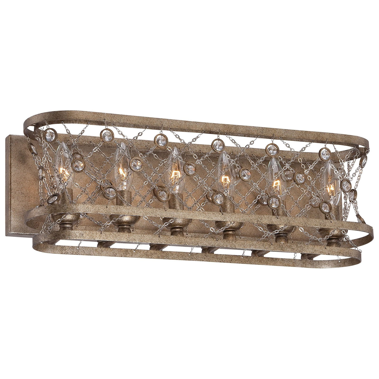 The eye catching bennett six light vanity fixture displays classic elegance with its lustrous effect.